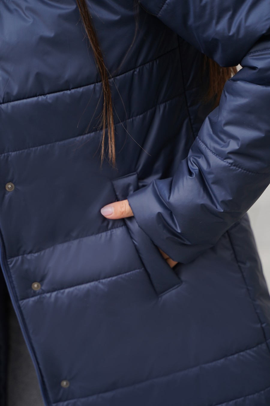 Женское демисезонное пальто – это идеальный выбор для осени и весны. Полупальто украшено стежкой, которая придает изделию оригинальный вид. Утеплитель сплошным полотном обеспечивает тепло в прохладные дни. Удлиненный крой и длинные рукава делают его комфортным и стильным вариантом для женщин больших размеров. Капюшон добавляет практичности и защищает от непогоды, позволяя чувствовать себя уверенно при любых условиях. Удобные карманы листочки позволяют хранить нужные мелочи. Стеганое пальто сочетает в себе функциональность и современный дизайн, что делает его подходящим для повседневной носки и прогулок по городу. Такой элемент гардероба легко сочетать с различными стилями одежды, добавляя изюминку в любой образ. В этом пальто вы будете не только защищены от холода, но и выглядеть стильно. Оно станет надежным спутником в межсезонье, обеспечивая тепло и комфорт.