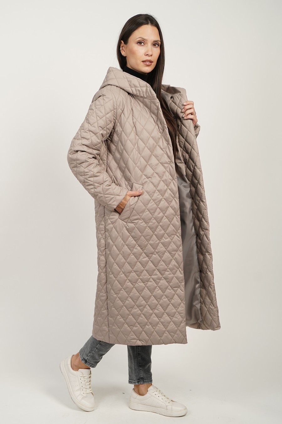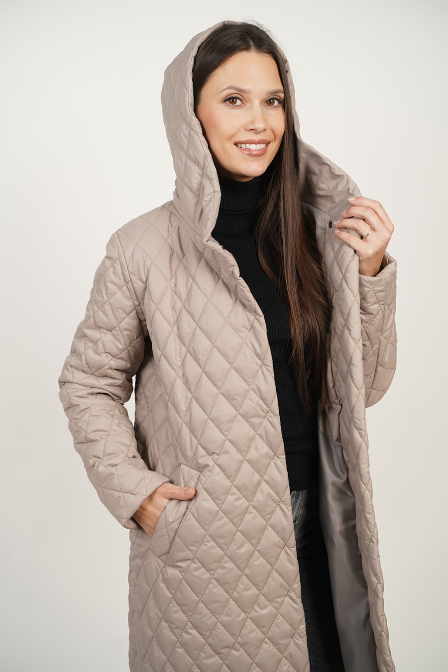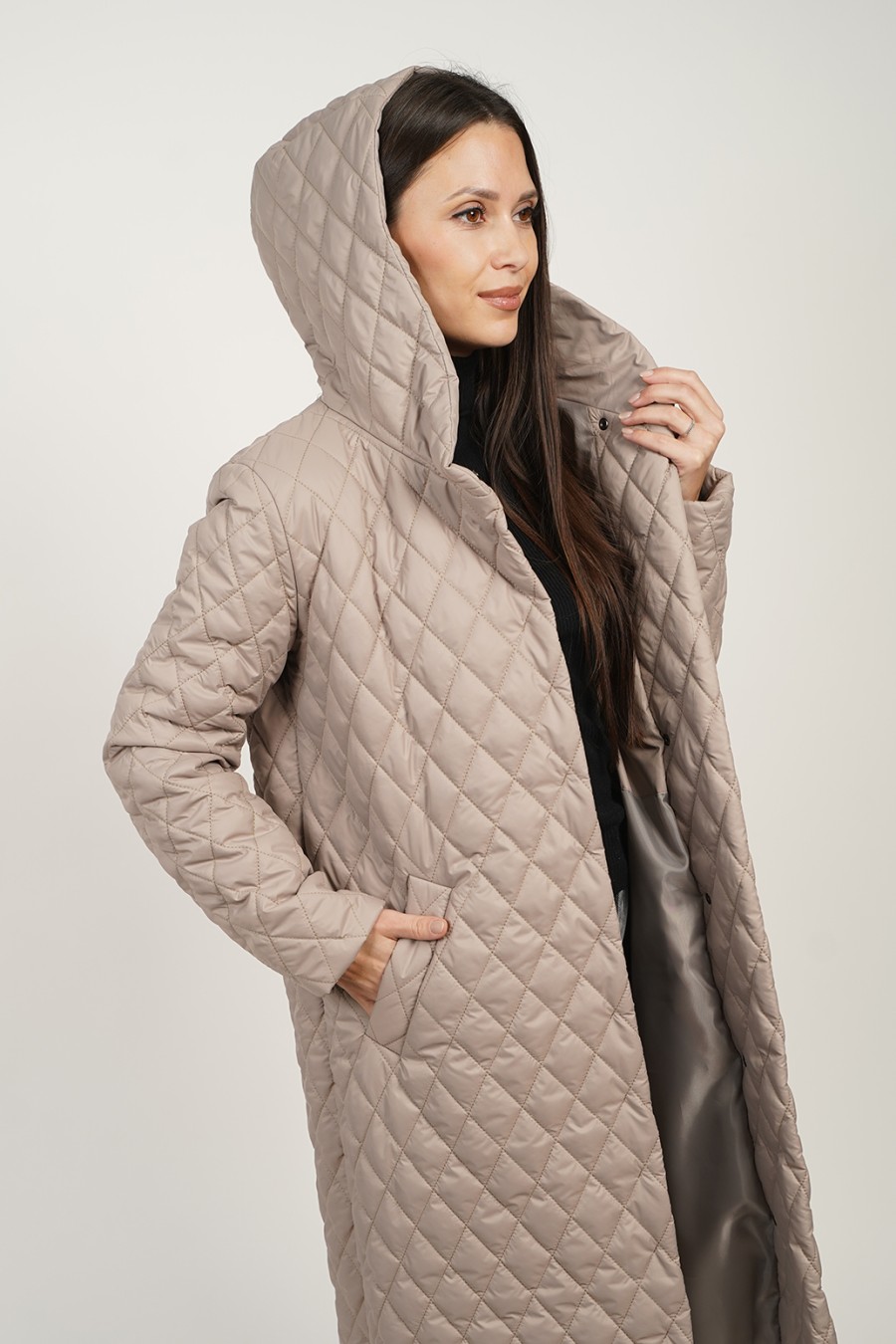 Шалевый капюшон становится ключевым элементом воссоздания уютного образа, защищая шею и голову от ветра. Его универсальность позволяет комбинировать пальто с различными аксессуарами — от шейных платков до объемных шарфов. Стеганая текстура придаёт изделию современный вид, и подходит как для повседневной носки, так и для особых случаев.