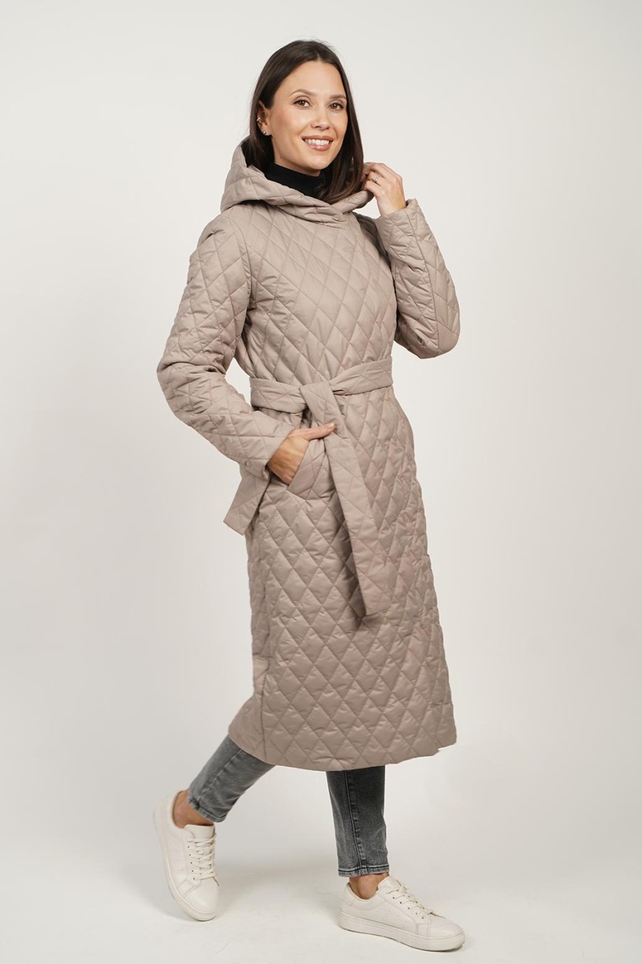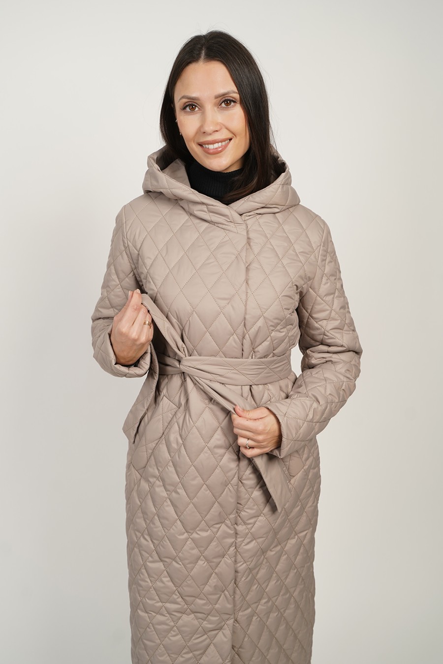 Современное длинное пальто с поясом и шалевым капюшоном — это идеальное решение для холодной погоды, сочетающее стиль и функциональность. Удобный в носке крой обеспечивает свободу движений, а компонент стеганого материала гарантирует тепло и комфорт. Особенности пальто, такие как хорошо продуманные карманы, придают практичность, а пояс подчеркивает талию, создавая элегантный силуэт.