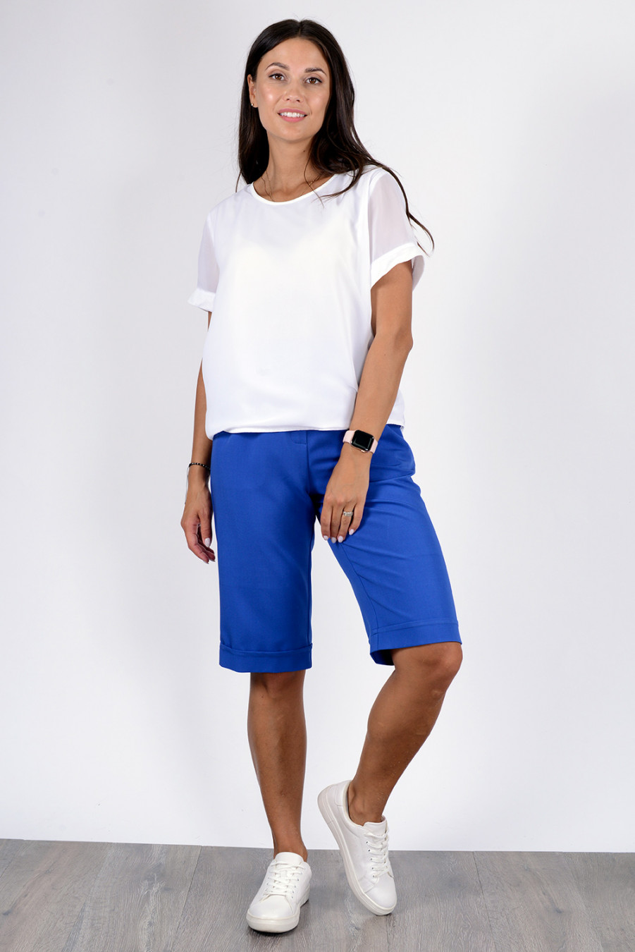 Стильные удлиненные шорты бермуды. Подчеркнут талию и скроют лишние кило в области бедер. Длина шорт позволяет носить их в сочетании с легкой блузой даже на деловые мероприятия.