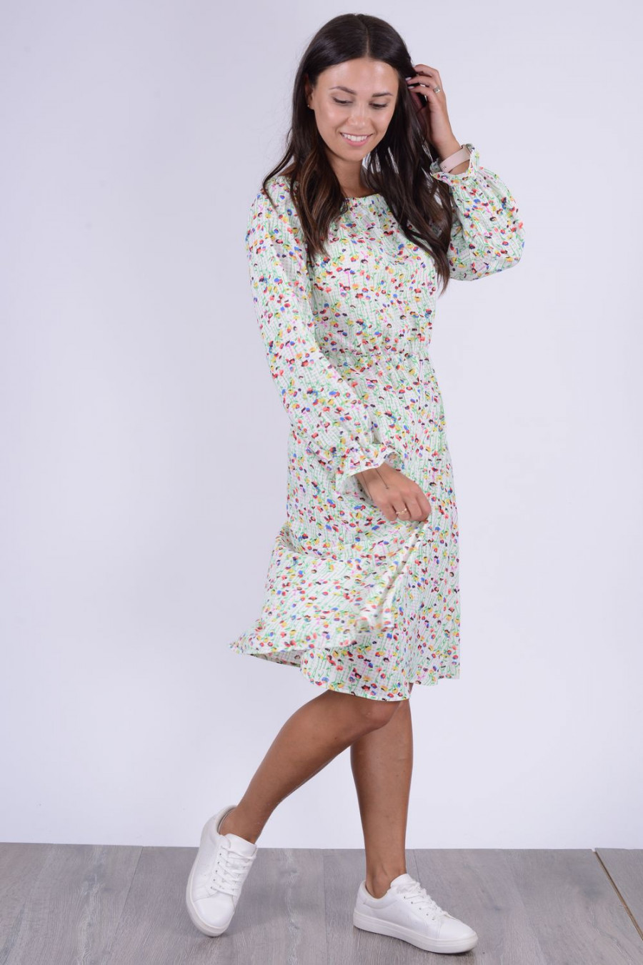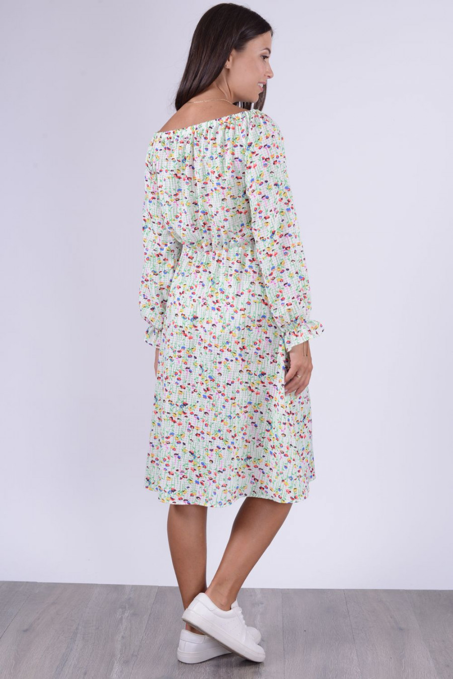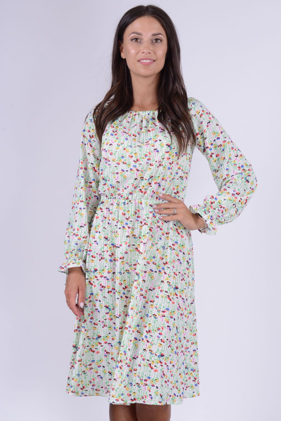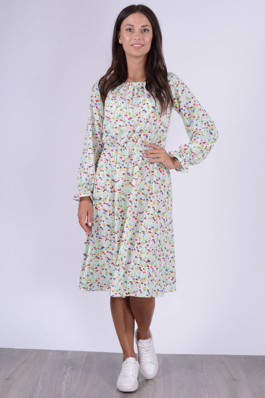 Шифоновое платье миди с длинным рукавом.
