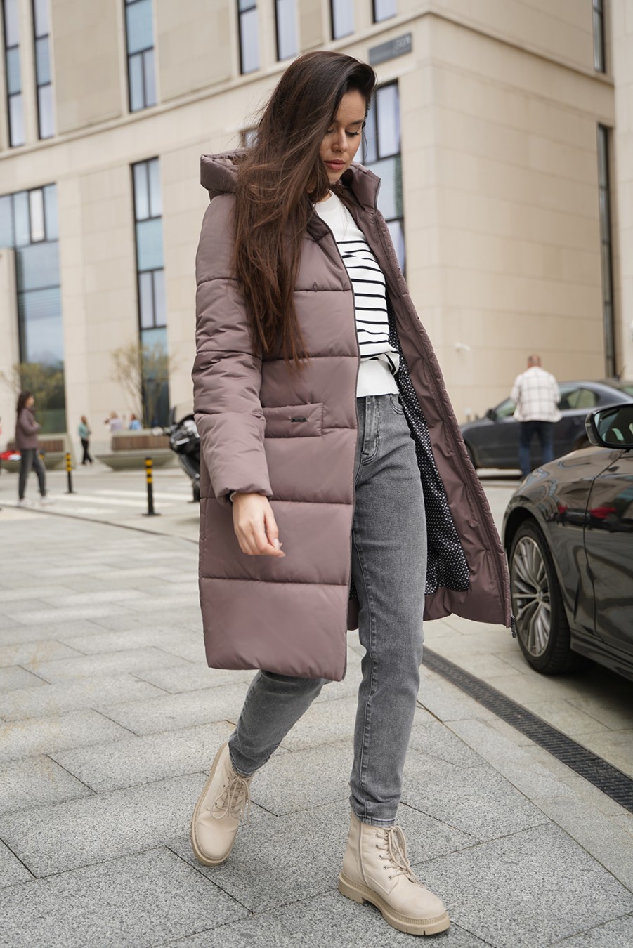 Зимнее пальто изготовлено из прочного материала, который отлично сохраняет тепло в холодную погоду. Пальто имеет стильный дизайн с молнией на всю длину и удобным капюшоном, который защищает от ветра и снега. Это пальто идеально подходит для повседневной носки в зимний период, обеспечивая комфорт и защиту от непогоды. Оно имеет удобные карманы для хранения мелочей. Для защиты от ветра и мороза рукава по низу дополнены внутренними трикотажными манжетами.Сочетание функциональности, стиля и комфорта делает это зимнее пальто отличным выбором для тех, кто ценит качество и удобство в одежде.